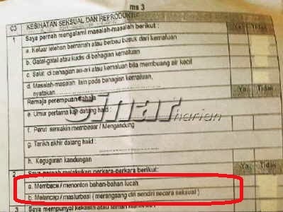 | SOALAN SEKS UNTUK MURID SEKOLAH Posted: 07 Feb 2014 04:20 AM PST Soalan seks untuk murid sekolah? SEREMBAN - Soalan berunsur seks dalam borang soal selidik yang diedarkan kepada murid sekolah rendah di Nilai mendorong dua wakil rakyat membuat aduan sekali gus menuntut tindakan Jabatan Pendidikan Negeri Sembilan, semalam. Adun Nilai, J Arul Kumar yang hadir bersama Adun Senawang, P Gunasekaran, mempersoalkan apa relevannya soalan berkaitan keguguran kandungan, kaedah mencegah kehamilan, penukaran jantina, masturbasi, bertukar-tukar pasangan dan hubungan seks luar tabii ditanya kepada murid sekolah rendah. "Soalan seperti ini tidak sepatutnya ditanya kepada murid sekolah rendah," kata Arul Kumar. Beliau turut menunjukkan borang soal selidik itu yang antara soalannya ialah 'Saya mempunyai keinginan seks terhadap (a) kaum (jantina) sejenis (b) keinginan untuk menjadi berlainan jantina'. Satu lagi soalan, 'saya pernah melakukan perkara-perkara berikut (a) membaca/ menonton bahan-bahan lucah (b) melancap/ masturbasi (merangsang diri sendiri secara seksual). Sinar Harian difahamkan, borang soal selidik itu diedarkan di sekolah-sekolah di negeri ini. Menurutnya, beliau dimaklumkan mengenai perkara itu Jumaat lalu oleh ibu bapa murid tahun empat yang bimbang persoalan yang dibangkitkan dalam soal selidik itu mencemarkan pemikiran anak mereka. "Setelah diteliti, kita dapati soalan pada halaman tiga itu memang tidak sepatutnya diajukan kepada murid sekolah rendah. Kita pun hairan bagaimana pihak berkenaan boleh terfikir untuk menyoal selidik budak sekolah rendah dengan soalan seperti itu. "Cuba bayangkan, apa yang kanak-kanak ini faham tentang keguguran kandungan, kaedah pencegahan kehamilan, penukaran jantina, masturbasi, bertukar-tukar pasangan dan hubungan seks luar tabii," katanya. Arul Kumar berkata, tidak timbul masalah jika soalan itu diajukan kepada golongan remaja, khususnya pelajar sekolah menengah memandangkan topik dibangkitkan bersesuaian dengan mereka untuk tujuan kesedaran. "Ibu bapa itu sendiri kata kepada saya, mereka serba salah apabila anak-anak yang masih kecil ini balik bertanya kepada mereka soalan-soalan yang mereka sendiri tak boleh nak jawab. Pada saya, perkara seperti ini boleh dedahkan anak-anak kepada perkara yang mereka tak sepatutnya tahu lagi pada peringkat usia itu," katanya. Sehubungan itu, Arul Kumar minta Jabatan Pendidikan negeri mengambil tindakan sewajarnya bagi memastikan insiden sama tidak berulang. "Kita harap Jabatan Pendidikan negeri memandang serius perkara ini kerana mengikut maklumat diterima, dipercayai kaji selidik berkenaan bukan saja diedarkan di sekolah terbabit, malah di semua jenis sekolah rendah di negeri ini sejak tahun lalu. "Bagaimanapun, kita terpaksa menanti sehingga hari ini (semalam) untuk bertindak selepas mendapat bukti mencukupi," katanya. Sementara itu, Pengarah Pendidikan negeri, Datuk Kalsom Khalid ketika dihubungi Sinar Harian berkata, siasatan awal pihaknya mendapati, kaji selidik berkenaan dibuat klinik kesihatan berdekatan tanpa pengetahuan dan kebenaran Jabatan Pendidikan negeri. "Setakat ini, kita tak pasti berapa banyak yang sudah diedarkan dan sekolah mana terlibat. "Buat permulaan kita minta pengurusan sekolah yang menerima borang kaji selidik ini supaya menghentikan pengedarannya," katanya. Kalsom berkata, pihaknya akan membuat siasatan lebih lanjut sebelum sebarang tindakan diambil. -SH Kementerian Pelajaran menunggu maklumat daripada Jabatan Pendidikan Negeri Sembilan (JPN) berhubung dakwaan tinjauan kecenderungan seks yang dilakukan ke atas murid sekolah rendah kebangsaan di Nilai. Menteri Pelajaran II, Datuk Seri Idris Jusoh berkata setakat ini pihak kementerian juga belum dapat memastikan jika insiden yang didakwa itu benar-benar berlaku. "Kita belum dapat maklumat lagi daripada pihak negeri berkenaan perkara ini. Kita kena lihat apa yang sebenarnya berlaku. "Sistem dan cara kita ada (untuk menangani perkara ini) termasuklah prosedur dia," katanya pada sidang media merasmikan pelancaran buku teks digital Kementerian Pendidikan yang meliputi 313 jenis buku teks di Petaling Jaya pagi ini. Semalam dua wakil rakyat DAP memfailkan rungutan mereka dengan Jabatan Pendidikan Negeri Sembilan berhubung satu tinjauan berkaitan kecenderungan seks yang didakwa berlaku di satu sekolah rendah di Nilai. ADUN Nilai J Arulkumar dan ADUN Senawang P Gunasekaran berkata mereka dimaklumkan perkara itu oleh seorang ibu bapa pelajar berusia 10 tahun minggu lepas. Antara soalan yang ditanya adalah sama ada pelajar pernah melakukan onani atau menonton bahan lucah dan sama ada mereka mempunyai kawan istimewa atau kekasih. Pelajar juga didakwa turut ditanya jika mereka mempunyai minat terhadap sesama jantina atau berhasrat untuk menukar jantina mereka. Selain itu mereka juga didakwa ditanya jika mereka ada bertukar-tukar pasangan, melakukan seks sejenis, melakukan seks di luar tabie atau mengamalkan perancangan keluarga. -mk greenboc |